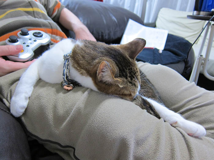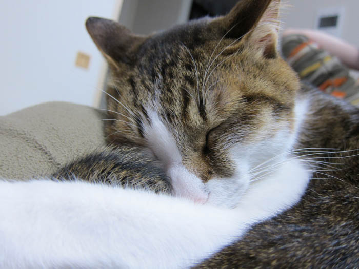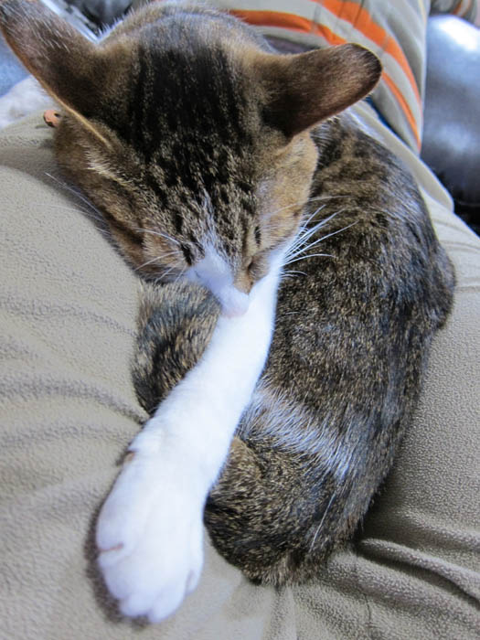 の足の上へ寝そべり、すぐにお昼寝モードに入りました。