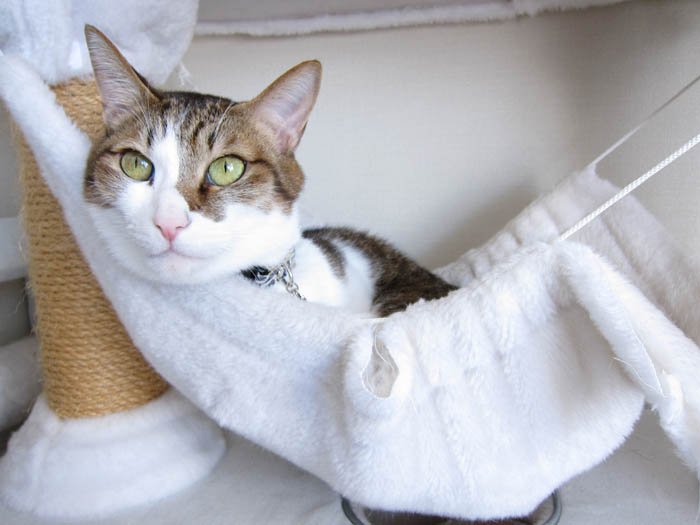 2011年 1/17(月) 884日目のぴっち♀とぽっけ♂ ~ハンモック大活用~お昼寝、爪とぎとぽっけ♂に一番活用されているハンモック。ぴっち♀も一緒にお昼寝したいようです。