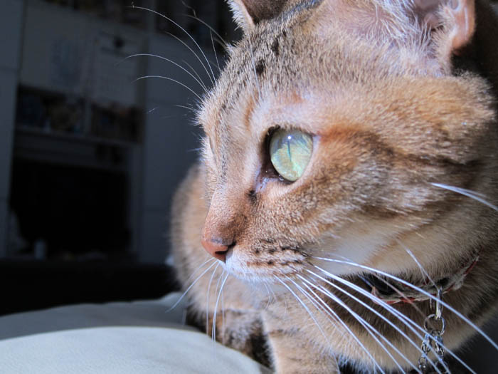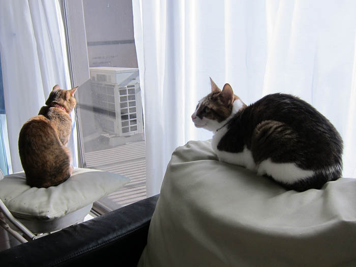 2010年 1/19(火) 521日目のぴっち♀とぽっけ♂ ~日向と日陰と~新規写真追加。それぞれお気に入りの場所でお昼寝したり、窓で外をじっと見たりする2匹。