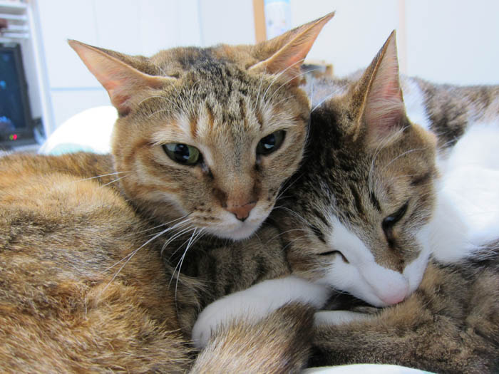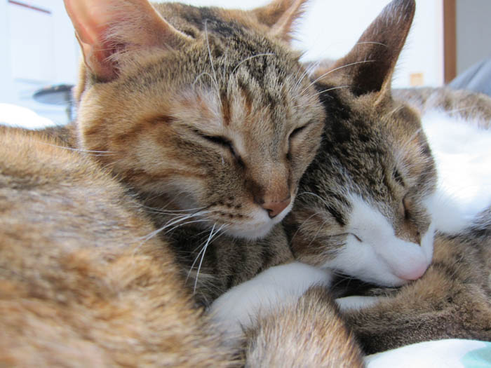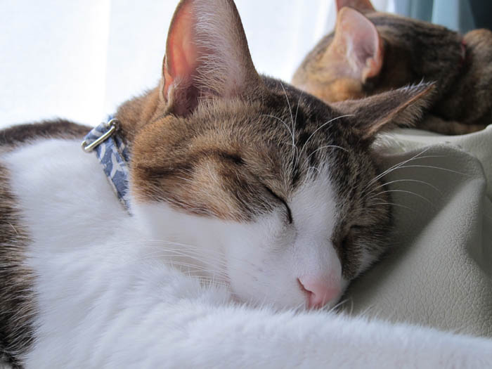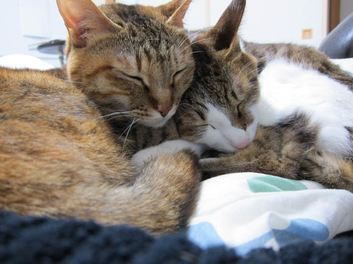 ぬくぬくと暖まりつつお昼寝していた2匹。