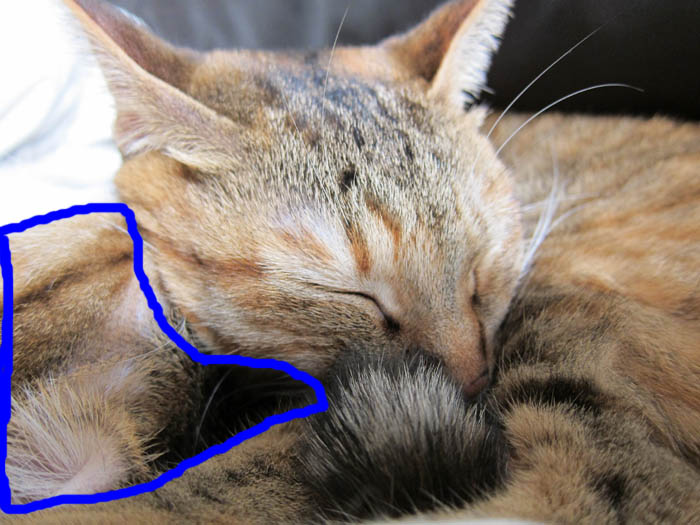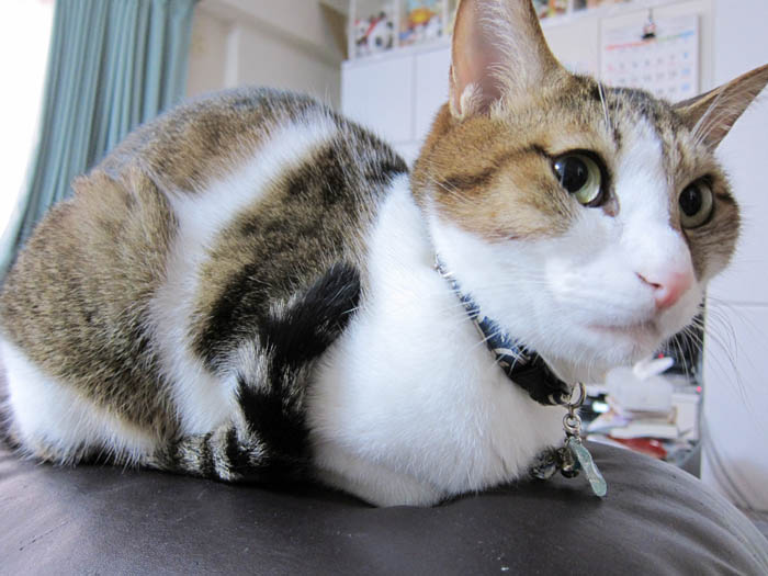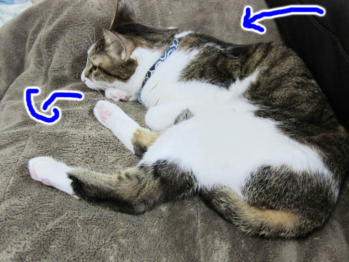 は後足としっぽを抱えて、何だか面白いポーズになりました。