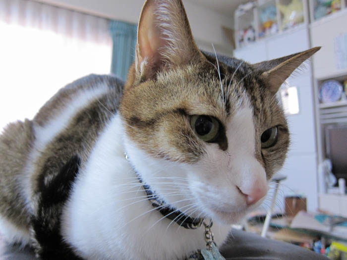 の膝の上でのぴっち♀の決意。よく伝わってくるのですが……。