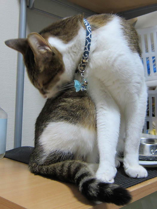 2010年 12/8(水) 844日目のぴっち♀とぽっけ♂ ~毛づくろいあれこれ~新規写真追加。ポカポカな窓際での2匹それぞれの毛づくろいをたっぷりと。舌の素敵写真もあります。