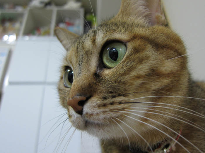2009年 12/8(火) 479日目のぴっち♀とぽっけ♂ ~危険なぽっけ♂ゴハン~新規写真追加。食後のゴハンの追加要求に励むぽっけ♂の日課。心を鬼にして日々節制。