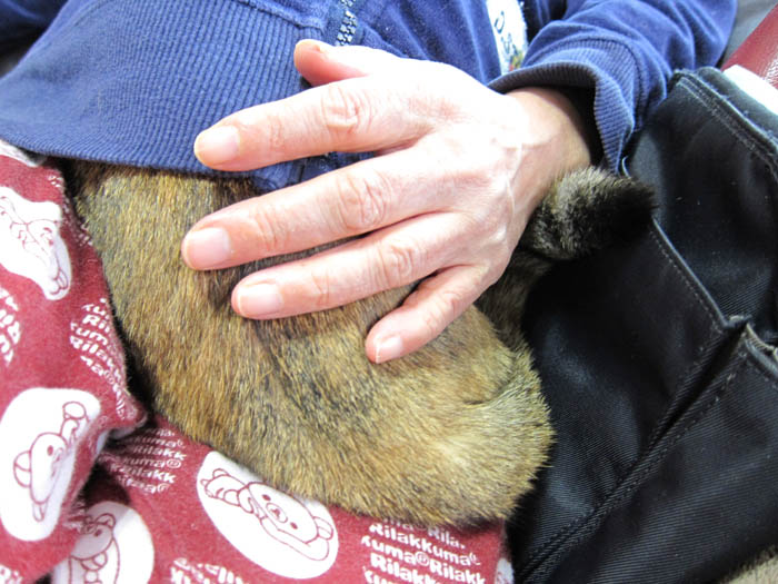 とぴっち♀が。お尻としっぽだけが上着の裾から見えています(笑)。