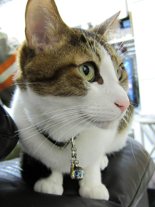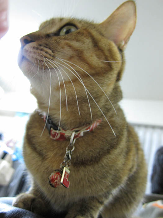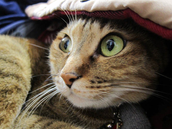 の側へと戻って来ました。今度は上着に潜らず、横に侍っています。