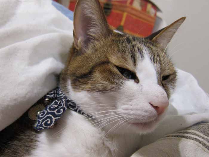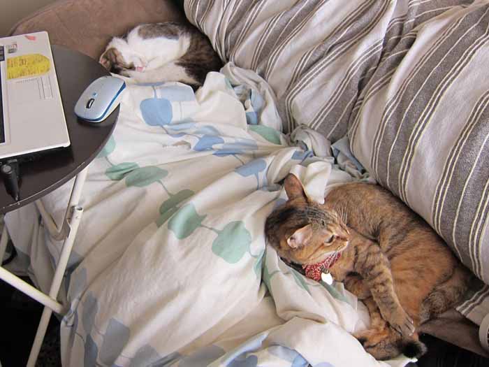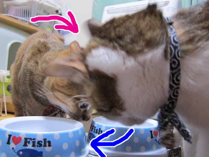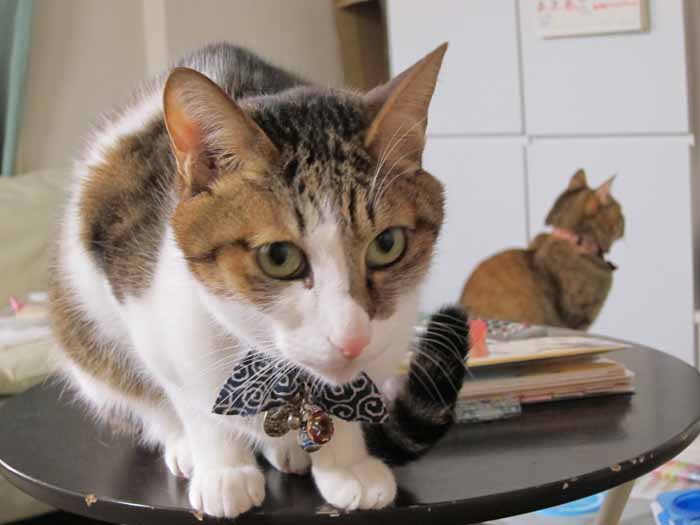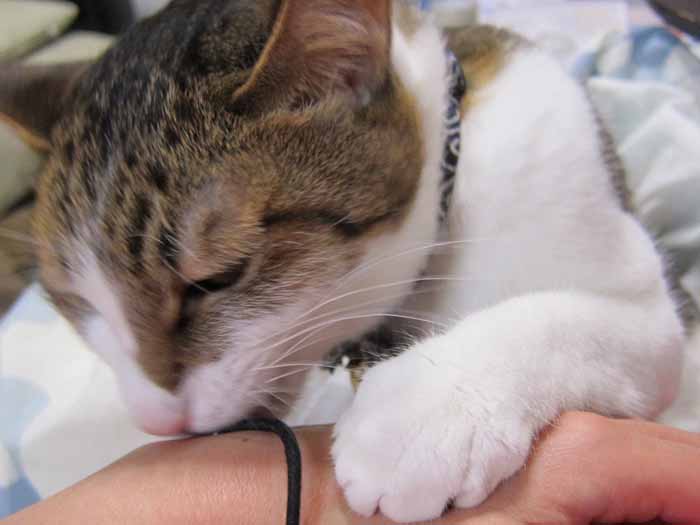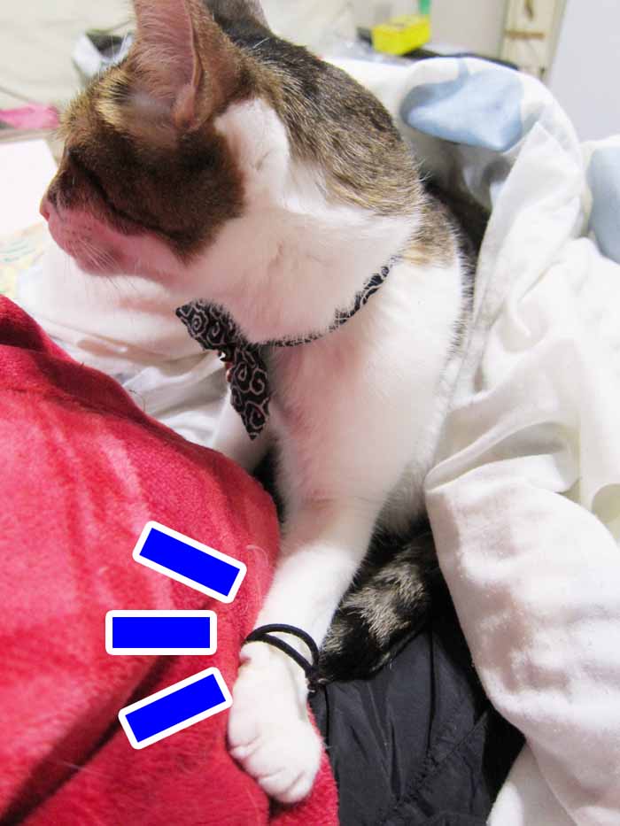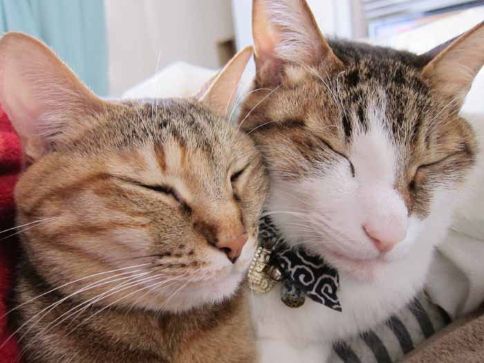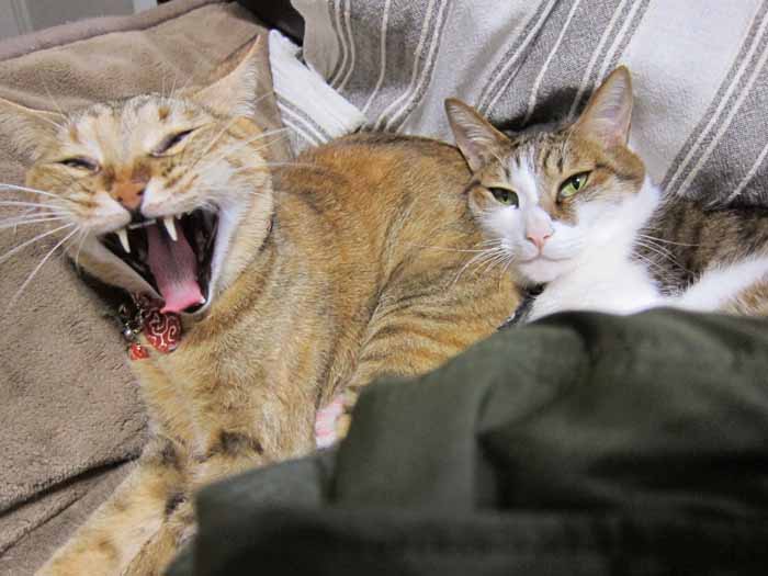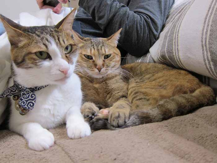 2012年 3/14(水) 1306日目のぴっち♀とぽっけ♂ ~猫の寝床事情~先客がいる寝床へ合流する時の2匹のルールを守らないと……。