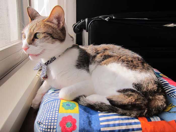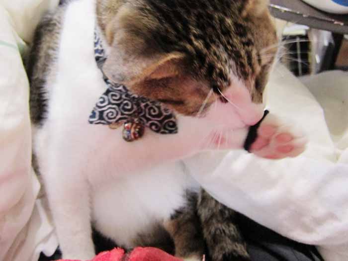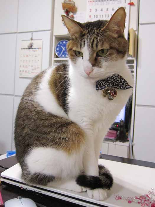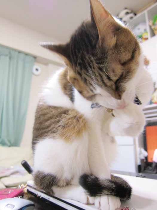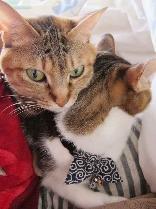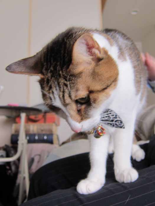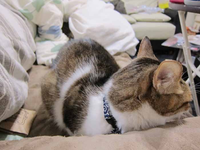 2010年 3/10(水) 571日目のぴっち♀とぽっけ♂ ~久々のご開帳~新規写真追加。自宅警備猫のぽっけ♂。手術から2ヵ月半ぶりのぴっち♀のお腹の毛の生え具合。