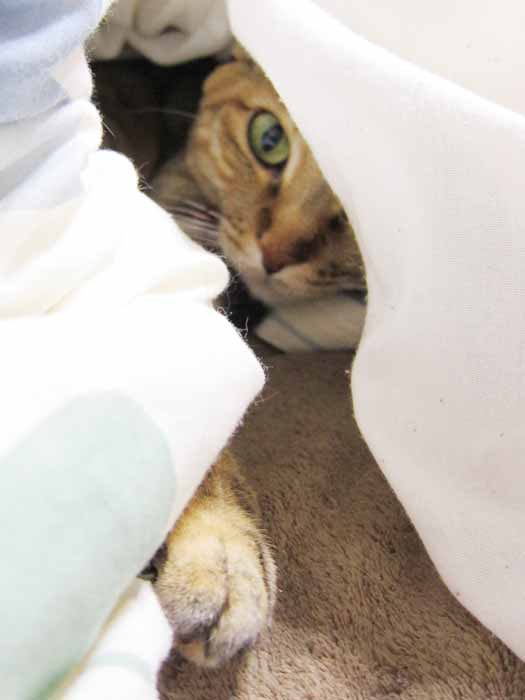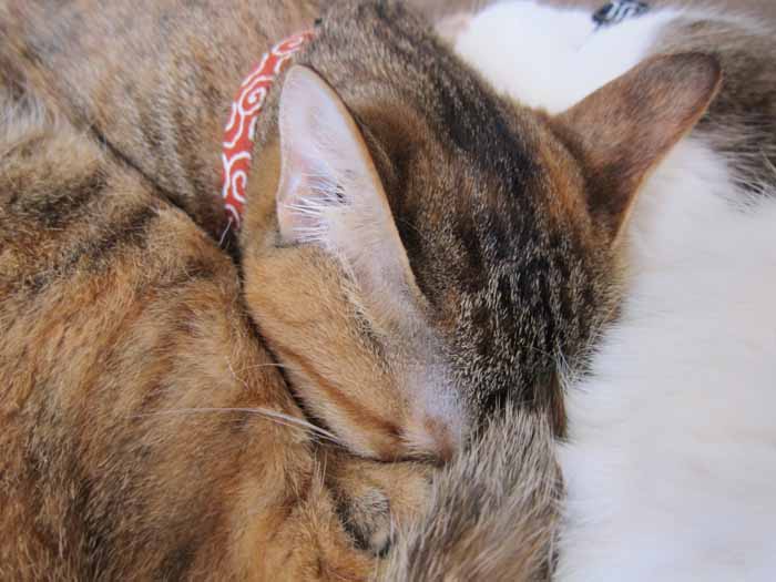 2012年 3/11(日) 1303日目のぴっち♀とぽっけ♂ ~落ちた猫かまくら~猫かまくらが落ちて、崩れてしまいましたが……。ぽっけ♂の器用な耳。コンパクトなぴっち♀。
