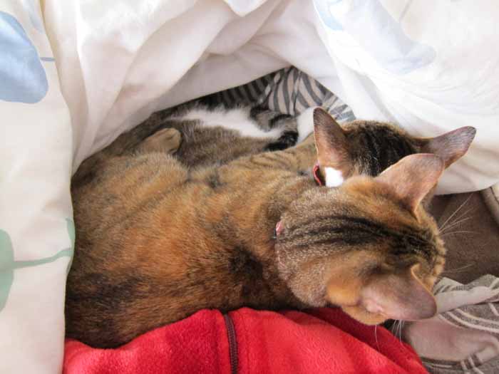 2010年 3/12(金) 573日目のぴっち♀とぽっけ♂ ~猫が布団~新規写真追加。2匹が布団になりました。ぴっち♀のイタズラする時の目は見ていて楽しいです。