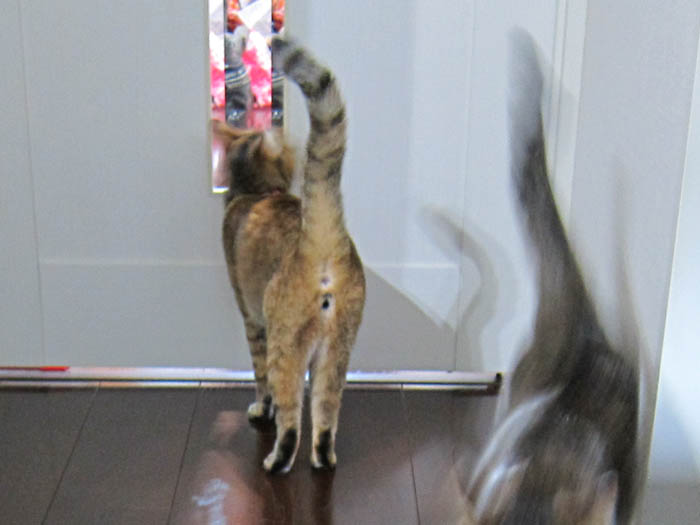 猫が廊下へと脱走していきます