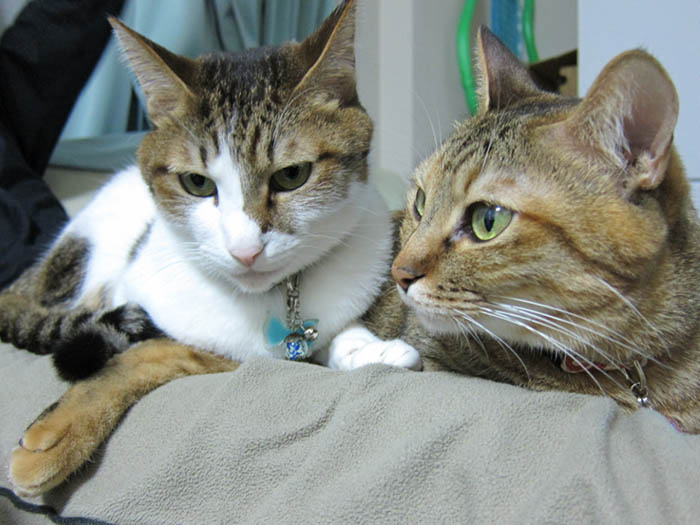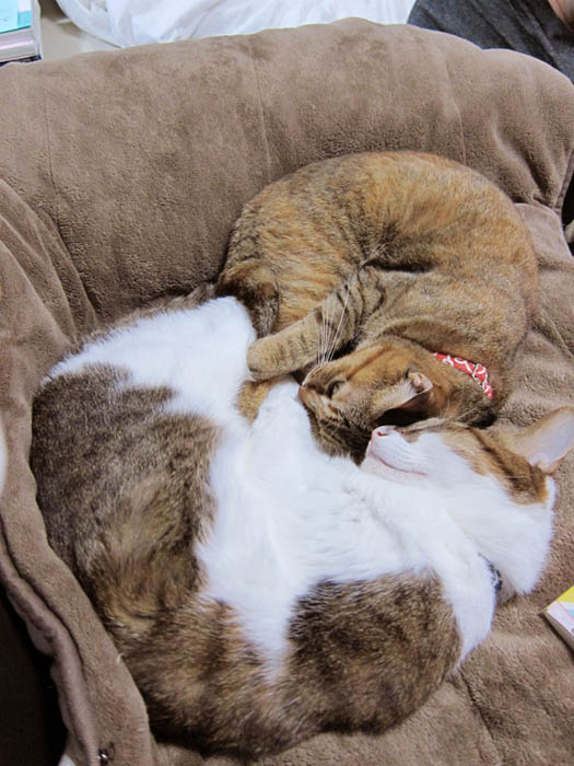 新規写真追加。たとえひっくり返っても猫ベッドに入る2匹。