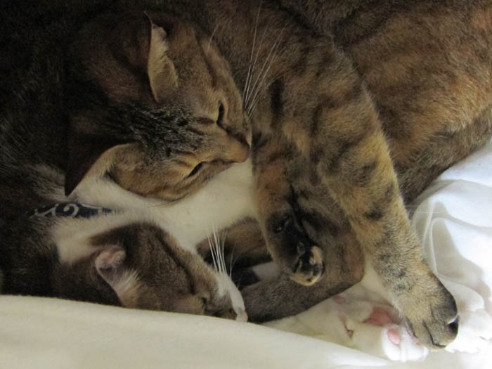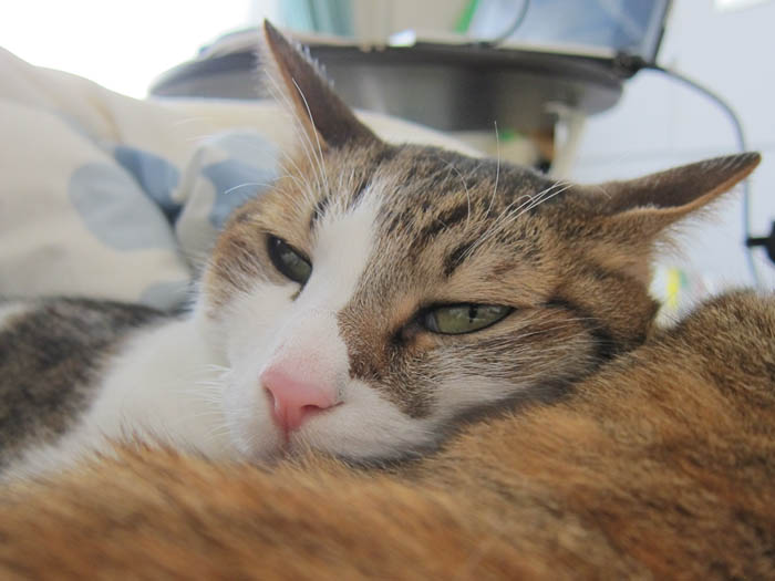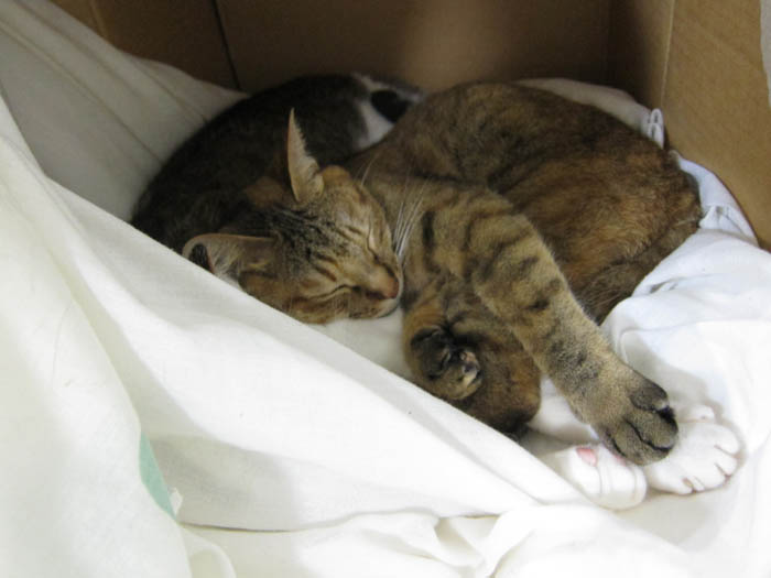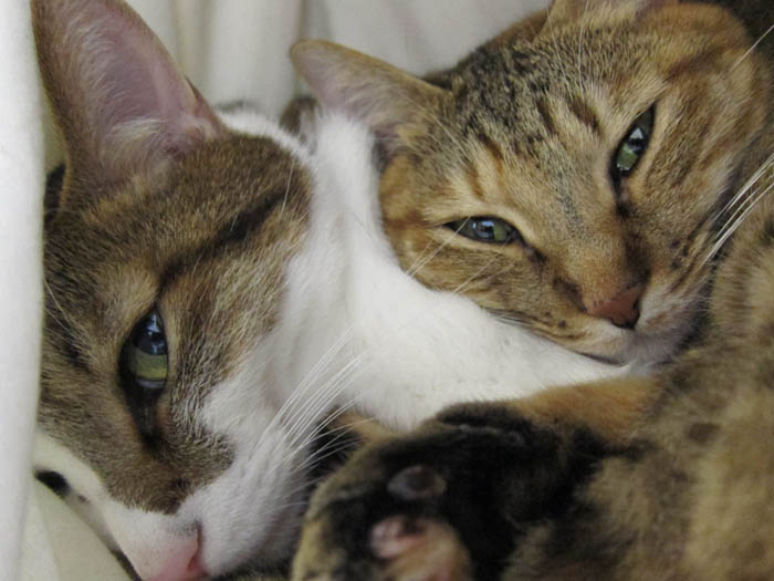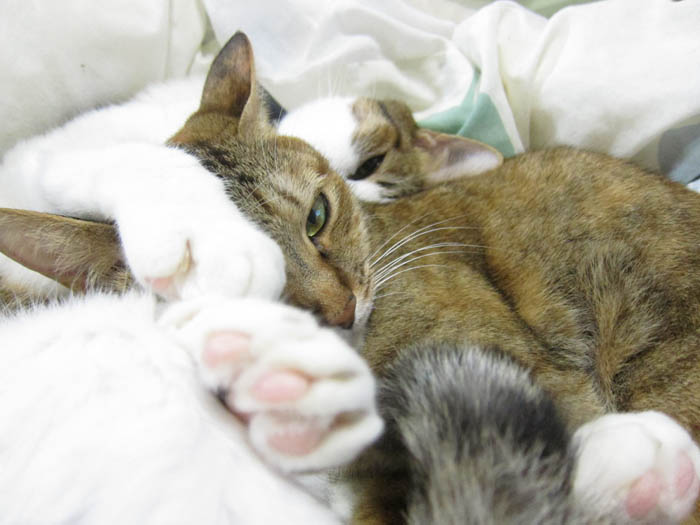2010年 10/29(金) 804日目のぴっち♀とぽっけ♂ ~臨機応変と猫の爪切り~お昼寝にこだわるぽっけ♂は素晴らしい臨機応変さ。爪切り嫌いな猫には寝ている時がチャンスです。