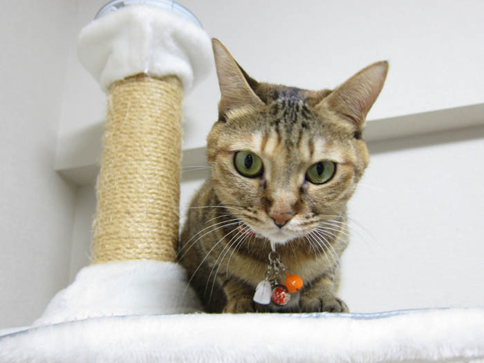 猫タワーへと逃げたぴっち♀ですが、