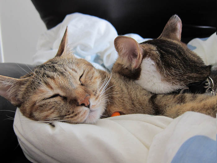寄り添って2匹が寝ています。