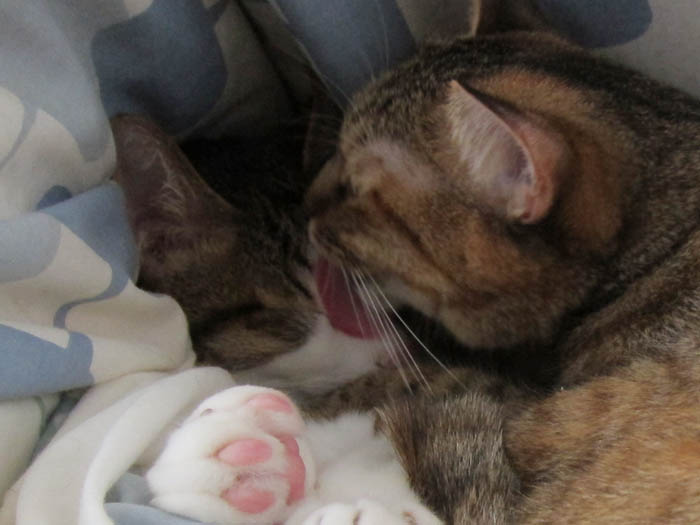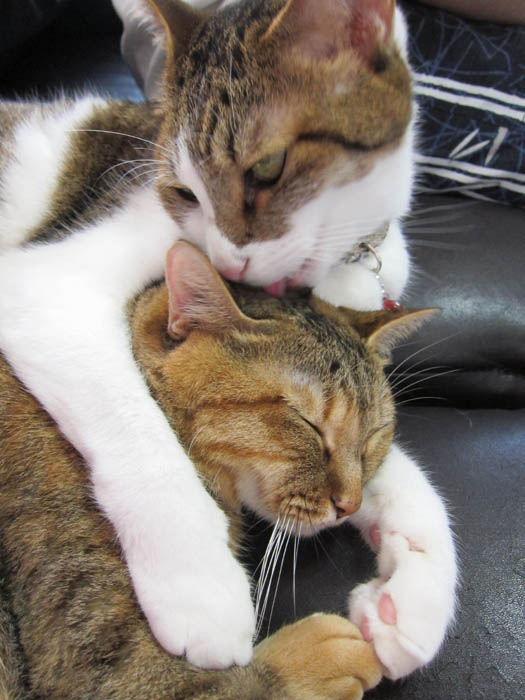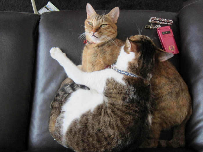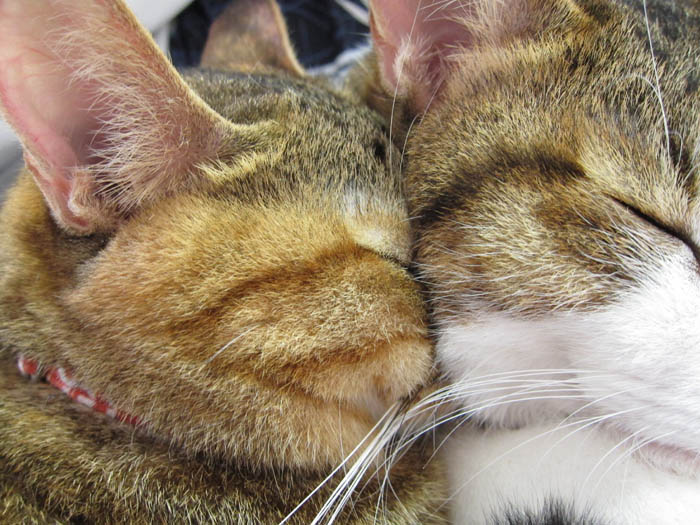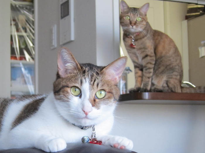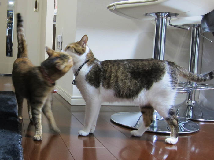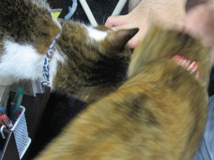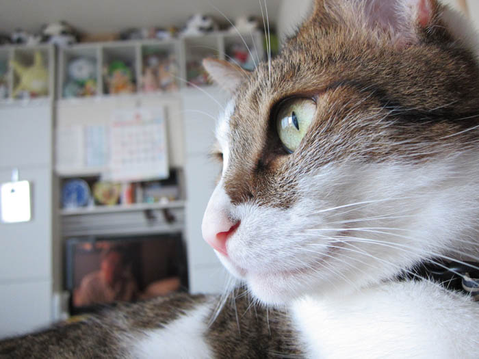 2011年 9/27(火) 1137日目のぴっち♀とぽっけ♂ ~おヒゲあちこち~なかなかに器用な猫のおヒゲ。あっちにいったり、こっちにいったり……。