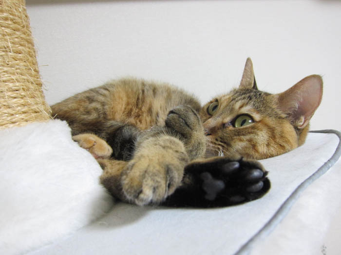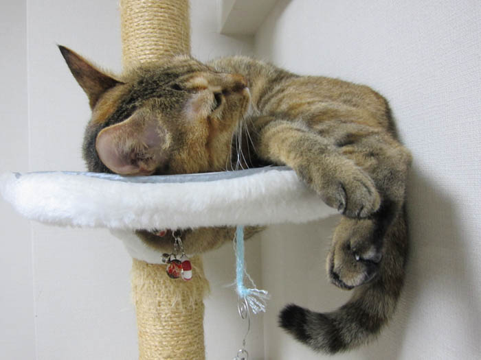 2008年 9/27(土) 42日目のぴっち♀とぽっけ♂ ~工夫してお昼寝?~新規写真大量追加。猫タワーでの2匹盛りのお昼寝は、寝姿も楽しいです。