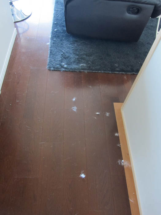 塊になっていない毛も沢山散っています。