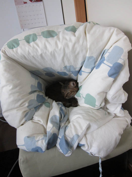 ※猫かまくら……段ボールを横にして、中に羽毛布団を押し込んだ