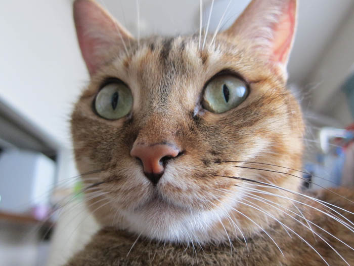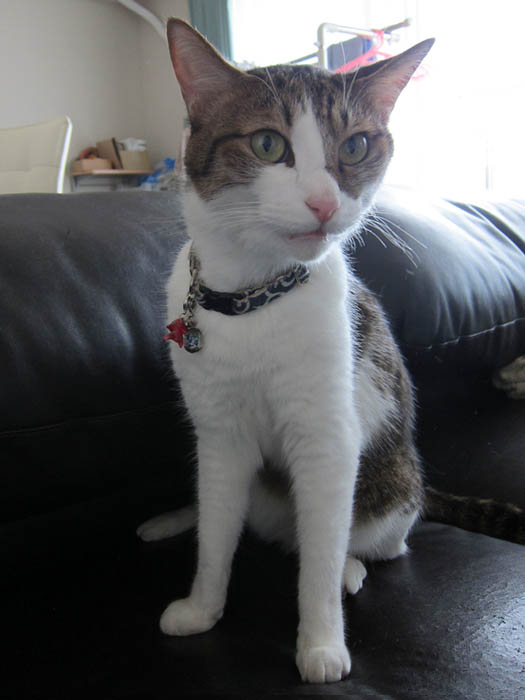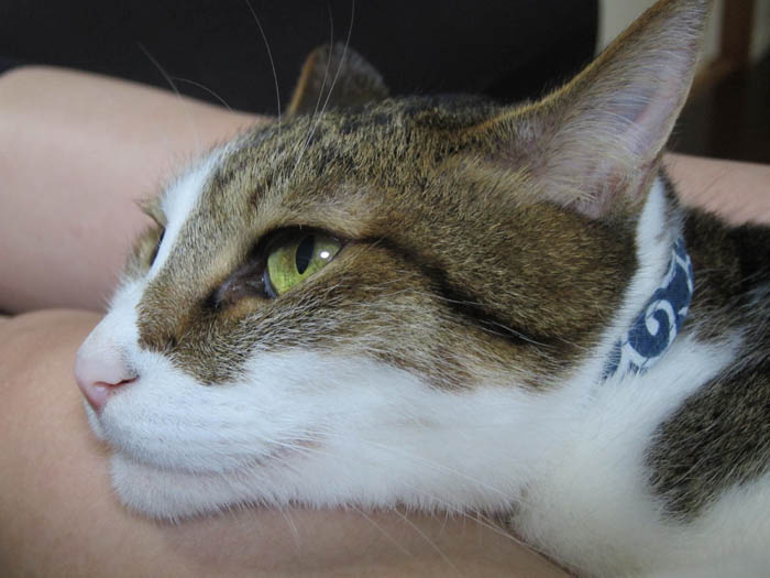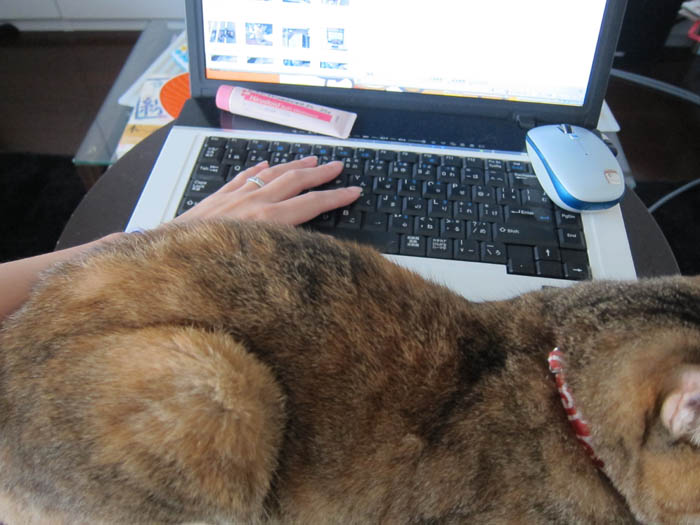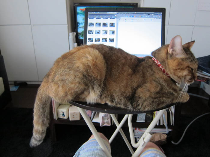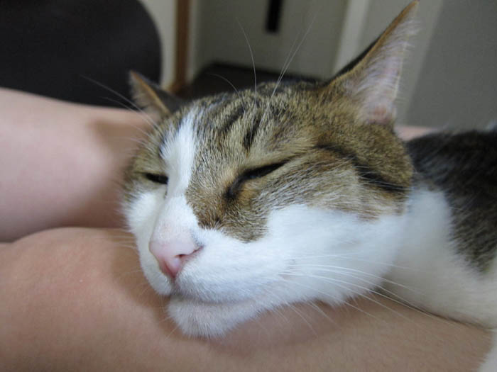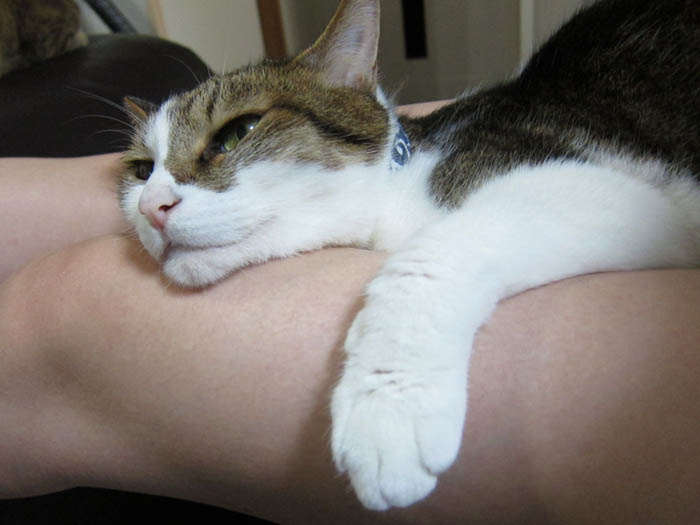 の元にやって来ました。ヨイショ、と当たり前のように顎を膝の上に乗せ、