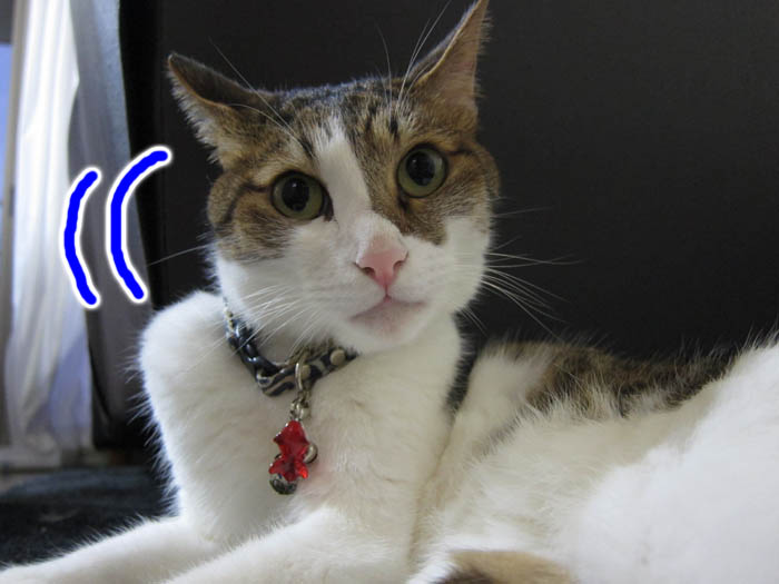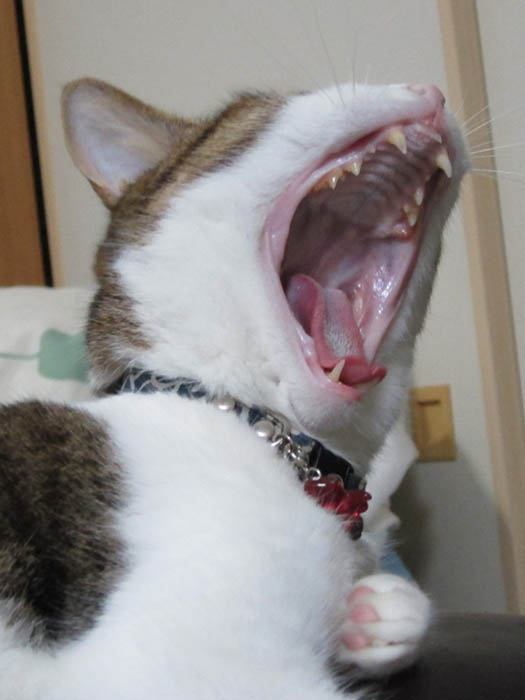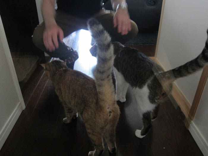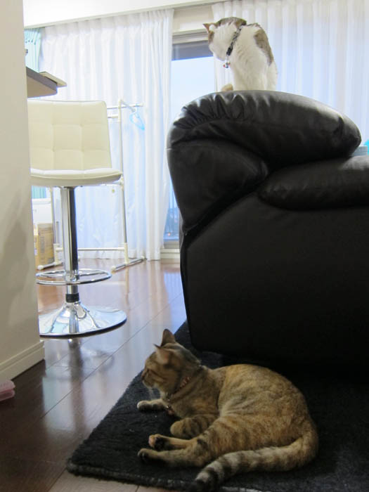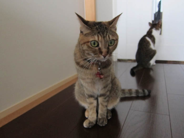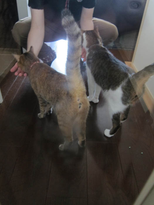 私も2匹の盛大な鳴き声と実力行使に耐えて、と