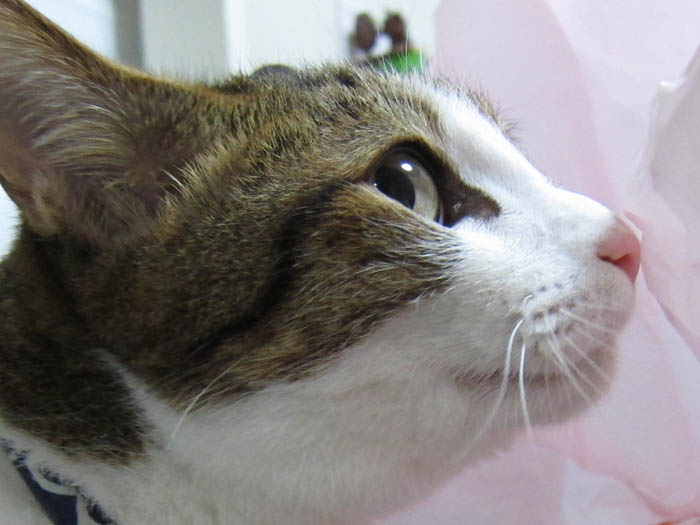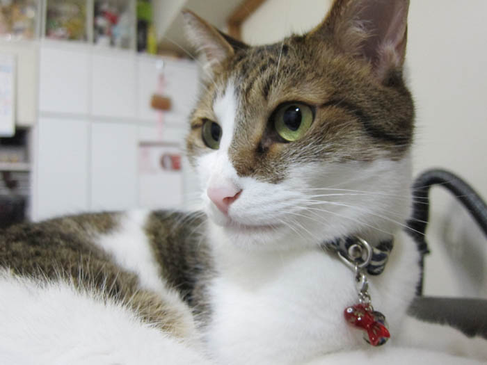 縞柄部分に比べ、白毛は長くてフワフワなのです