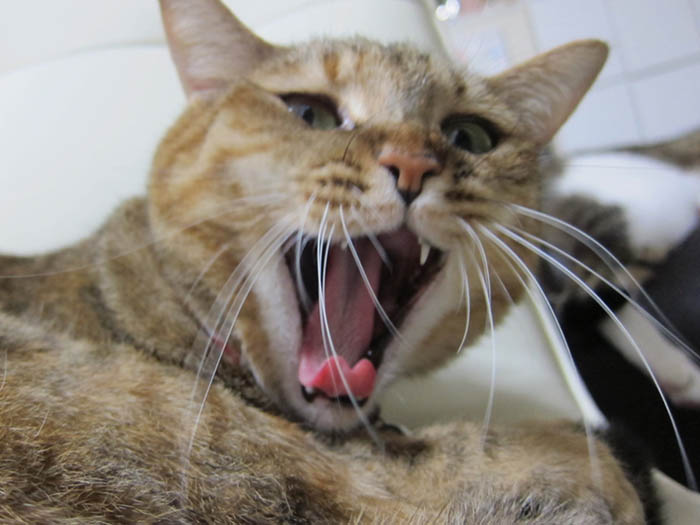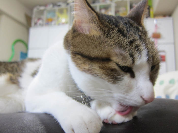 をお手入れが始まりました。ゴハンを食べた直後なので、