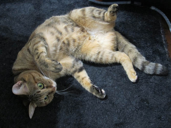 ぴっち♀が絨毯の上でコロコロタイムを始めました。