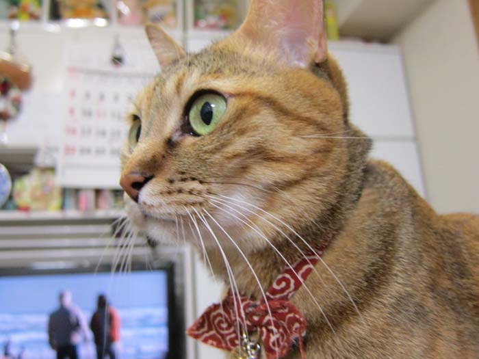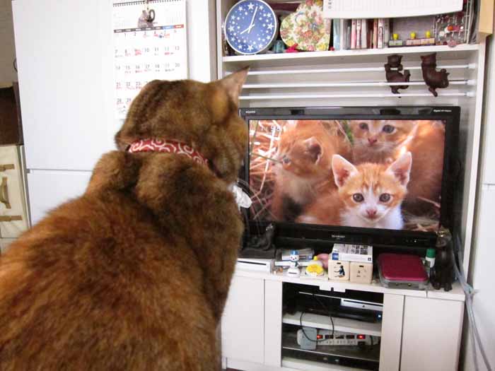 2009年 3/1(日) 197日目のぴっち♀とぽっけ♂ ~TV鑑賞中~ぴっち♀のTV観賞。画面に映る動物に