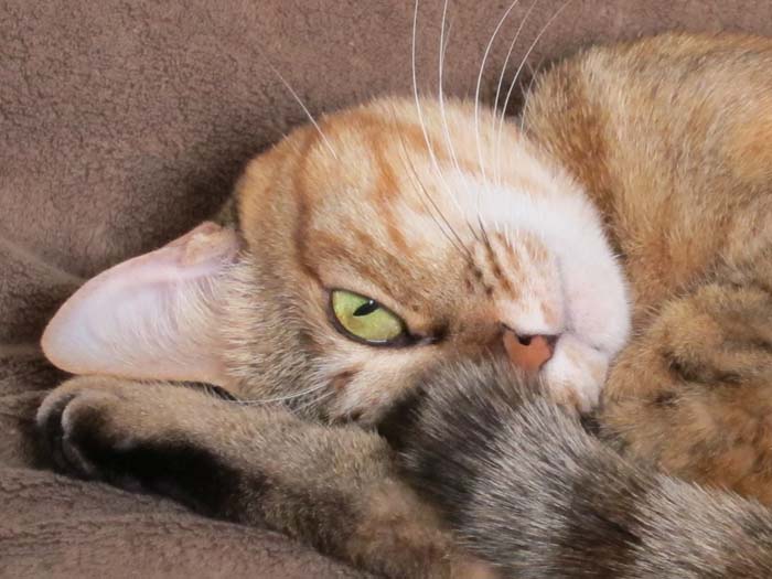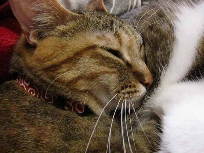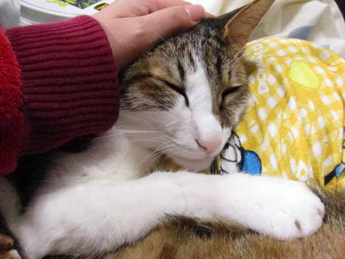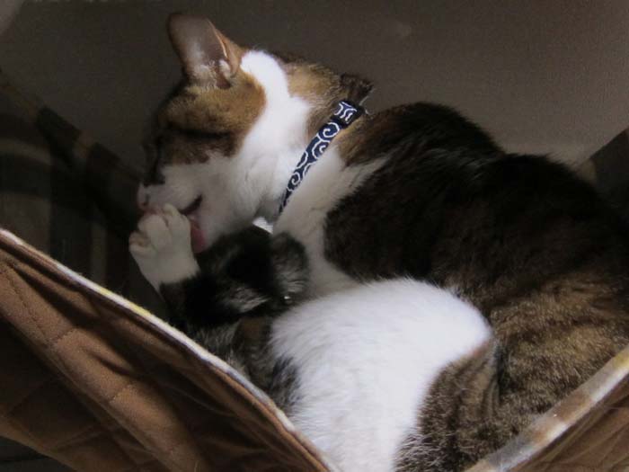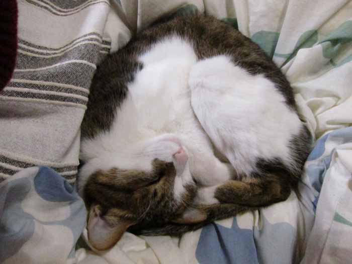 2012年 2/28(火) 1291日目のぴっち♀とぽっけ♂ ~真ん丸コンパクト~素敵な毛並みの割れっぷりで真ん丸&コンパクトになってお昼寝中のぽっけ♂。