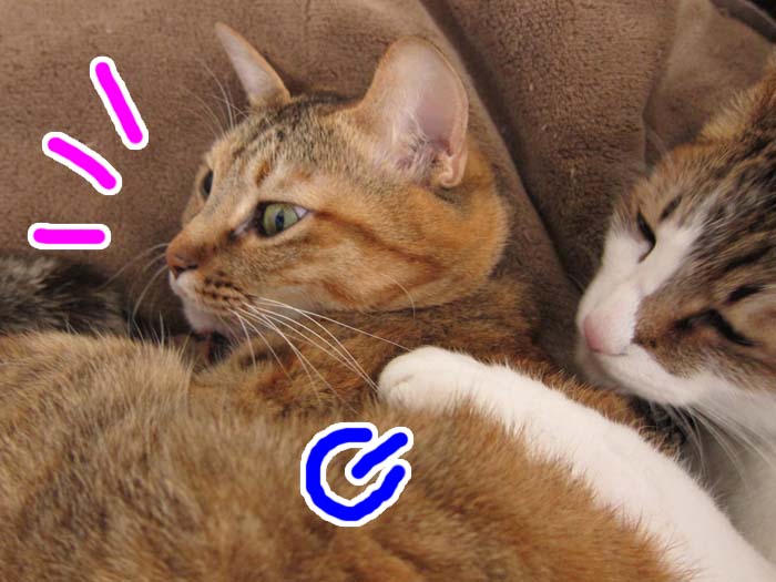 2010年 3/1(月) 562日目のぴっち♀とぽっけ♂ ~猫のクリームパン~ぴっち♀のアピールポイントは……美味しそうな「アレ」です。