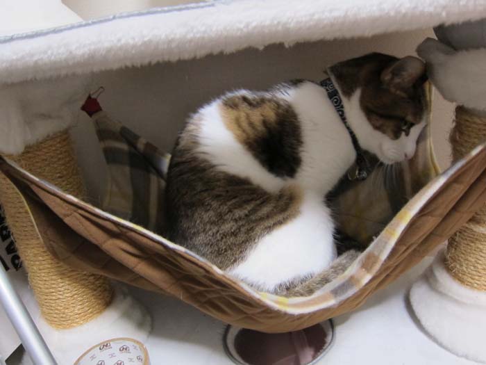 2012年 3/1(水) 1293日目のぴっち♀とぽっけ♂ ~午後の2匹~ハンモックで丸まってお昼寝するぽっけ♂と羽毛布団に潜伏中のぴっち♀。