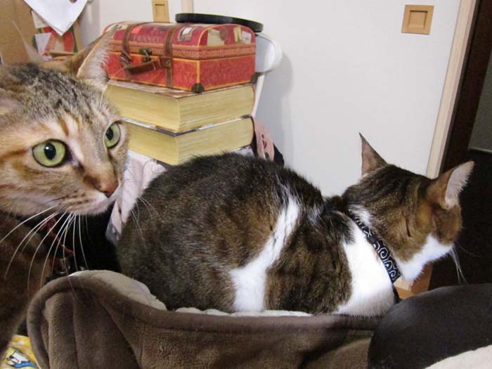 2012年 2/27(月) (1)1290日目のぴっち♀とぽっけ♂ ~スッポリ~べッドは猫も場所も選べません。選ばれるのみなのです。