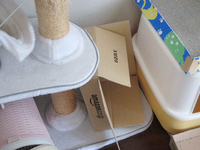 リビングを駆け回った後、ぴっち♀がよく入る段ボールへ突入。