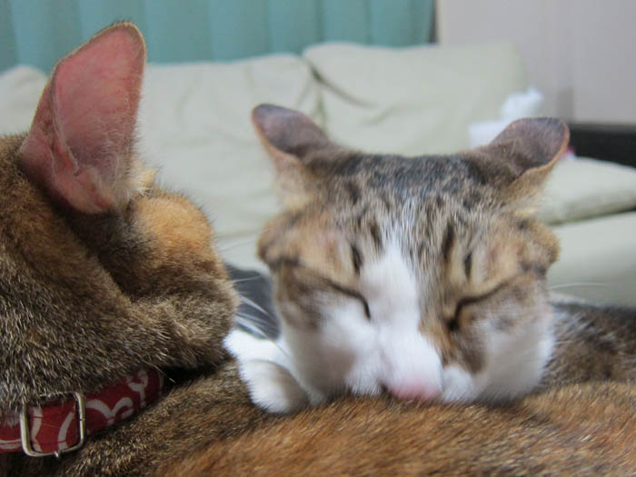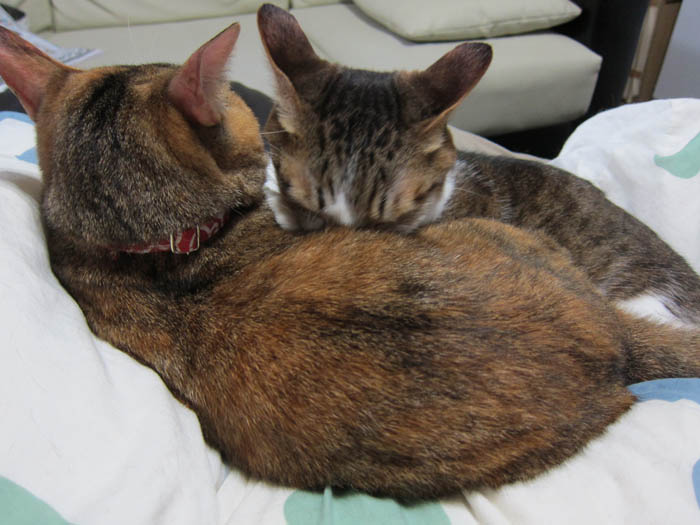 1つ前の記事に、私達の出発後に2匹のお世話をお願いしたMさんからの写真も追加しました