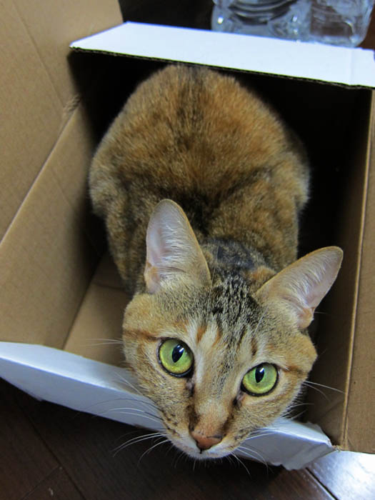 ぴっち♀は窓際の白ソファーに置いてある箱の中へ。