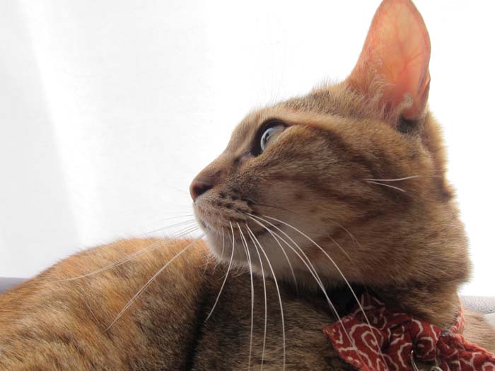 ぽっけ♂がソファーの背もたれの上でキリリ