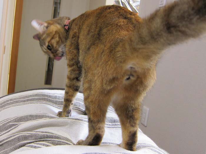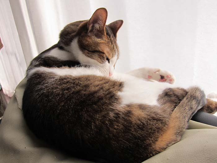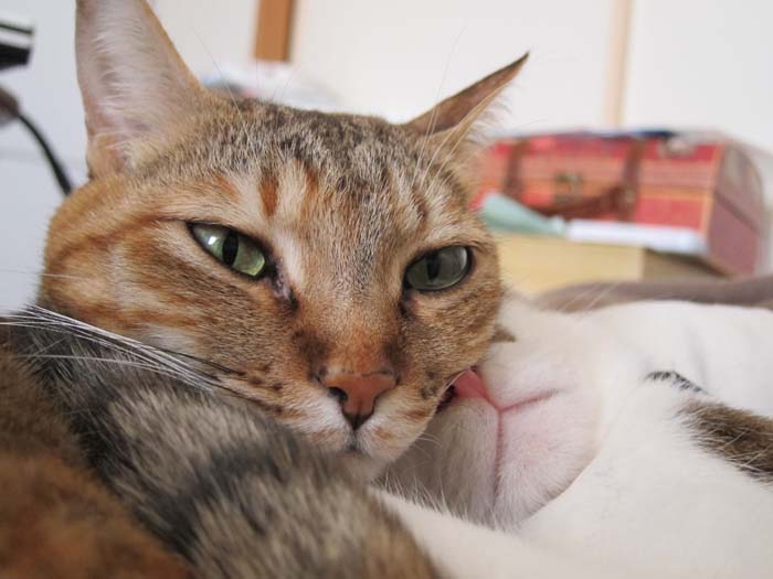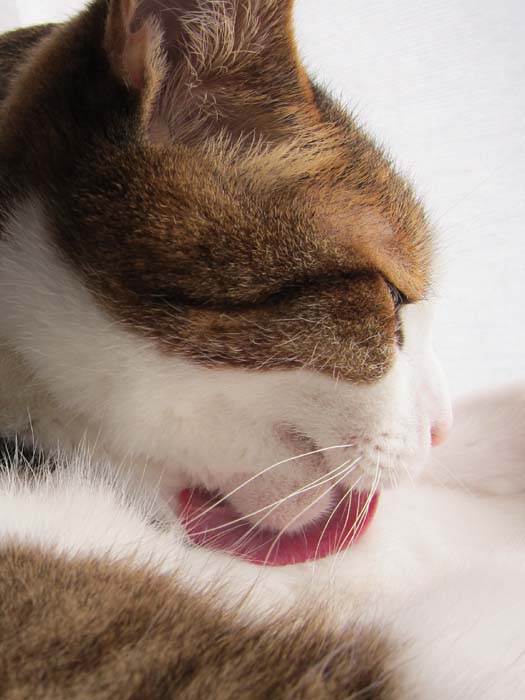 前足の付け根の毛づくろいを始めました。