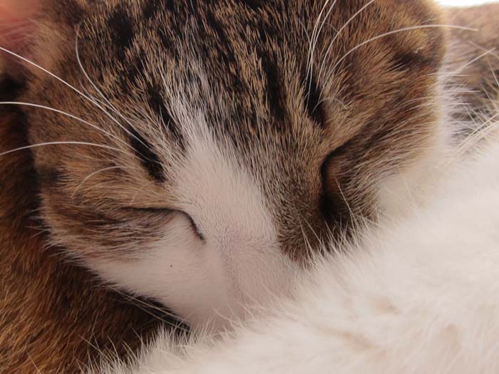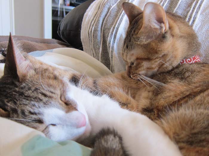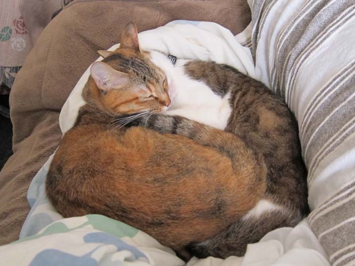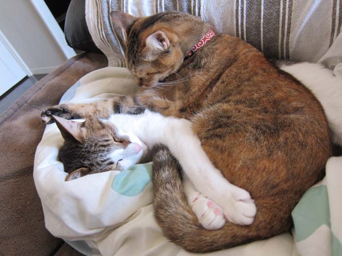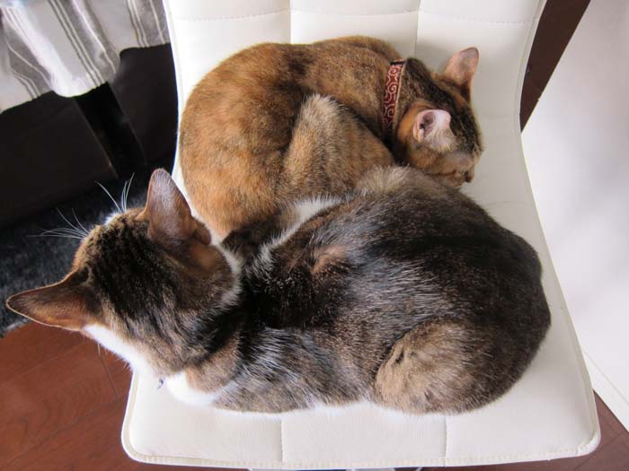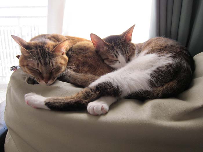 2011年 2/16(水) 914日目のぴっち♀とぽっけ♂ ~重石猫~膝の上の猫はちょっと重い湯たんぽですが、2匹揃うと重石になります……