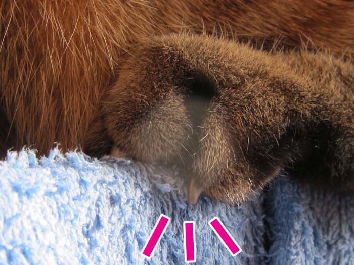 鼻と肉球はピンク&茶