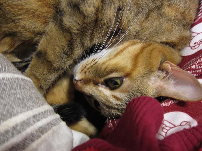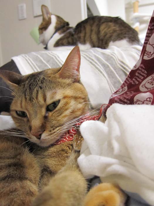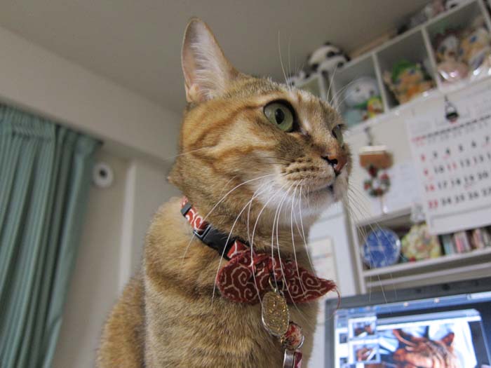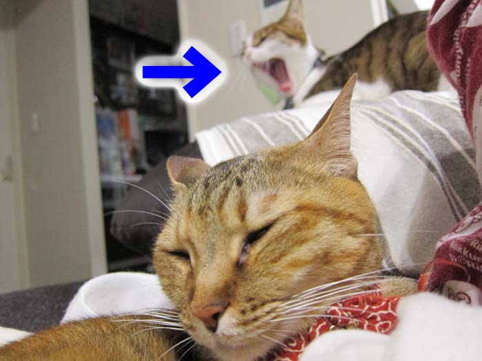 2012年 2/14(火) 1277日目のぴっち♀とぽっけ♂ ~猫の黒目~ぽっけ♂の黒目がパッチリ。バレンタインということで、2匹にはとあるプレゼントを。