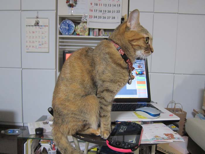 ぴっち♀の定位置であるカウンターの椅子で