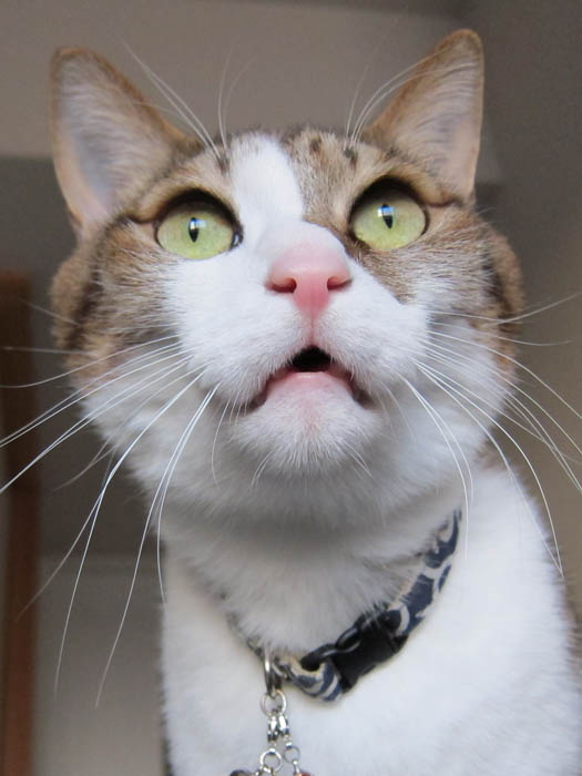 に気づくと、こちらを見上げてくれましたが、顔がつぶれ気味になっています(笑)。