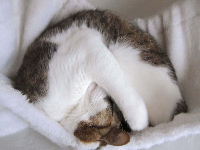 丸まってお昼寝中のぽっけ♂。