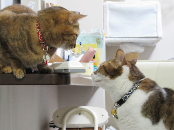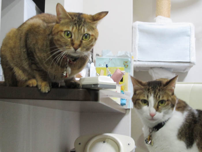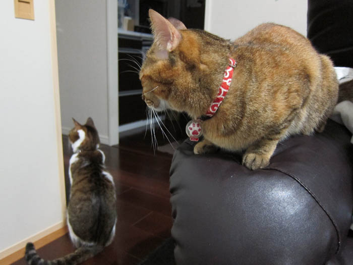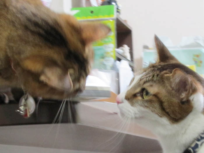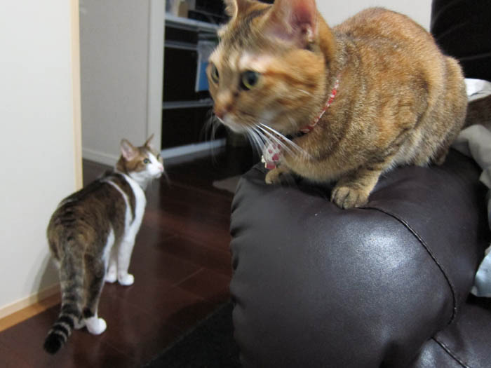 ちびっこ2人のパワーに押されっぱなしの2匹。