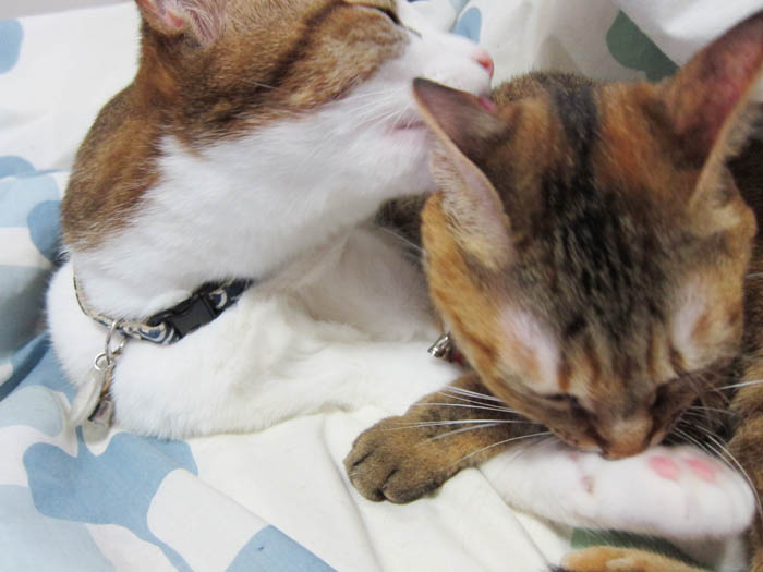 お互い毟り合った毛があちこちに散っている今日この頃です。