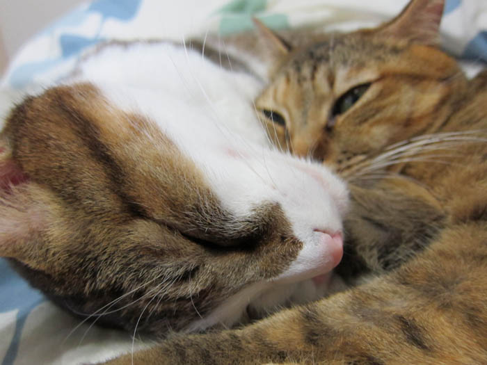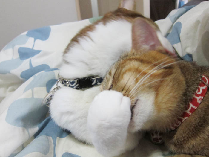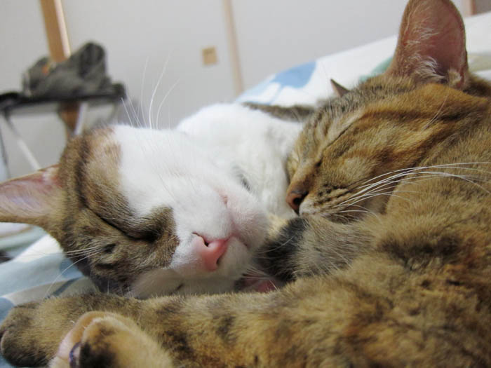 2008年 12/29(月) 135日目のぴっち♀とぽっけ♂ ~猫のハンスト継続中~新規写真追加。クリスマスの豪華ゴハンを期待し、ハンストしながら果報は寝て待つ2匹。