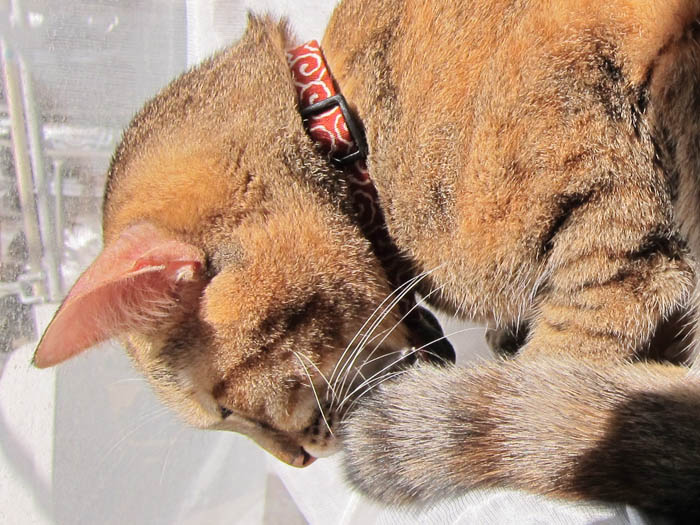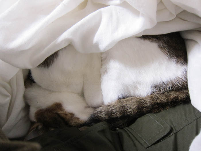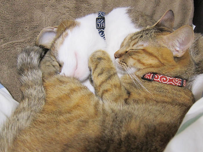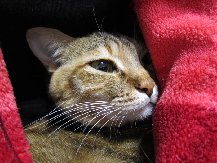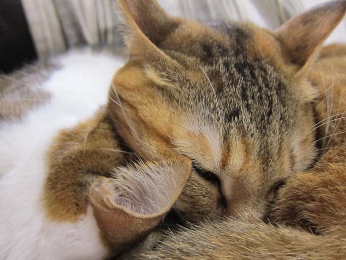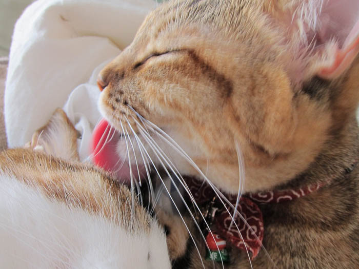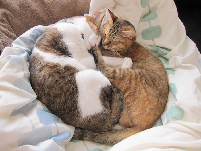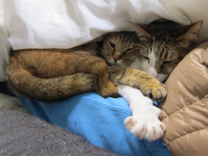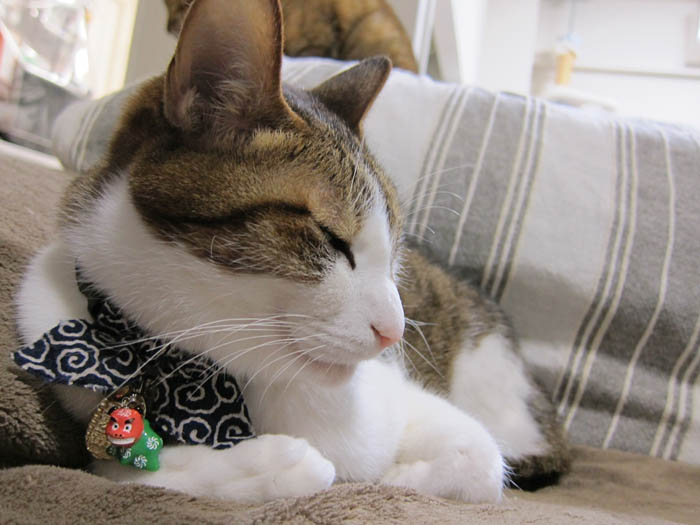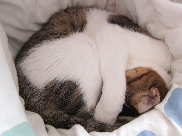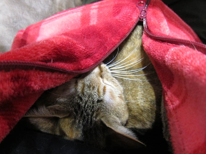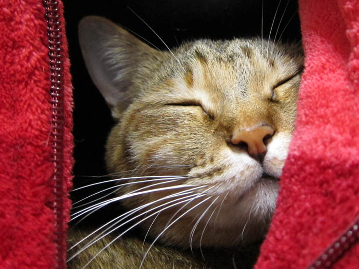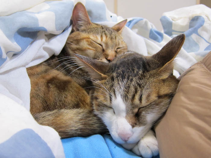2009年 2/1(日) 169日目のぴっち♀とぽっけ♂ ~伸びる2匹~新規写真大量追加。猫ベッドの新しい使い方は斜め寝。見る・即・噛むのぴっち♀と、りりしいぽっけ♂。