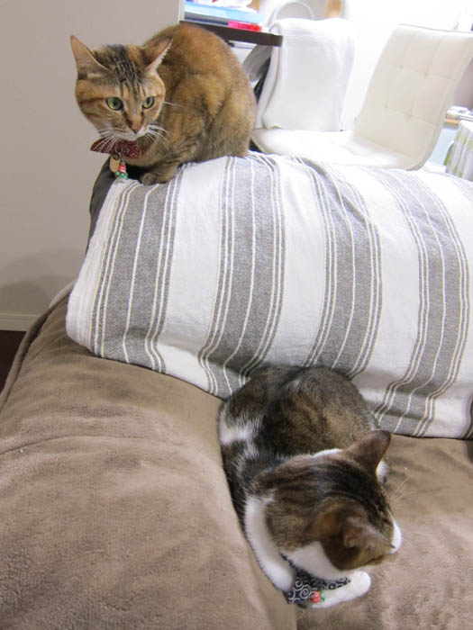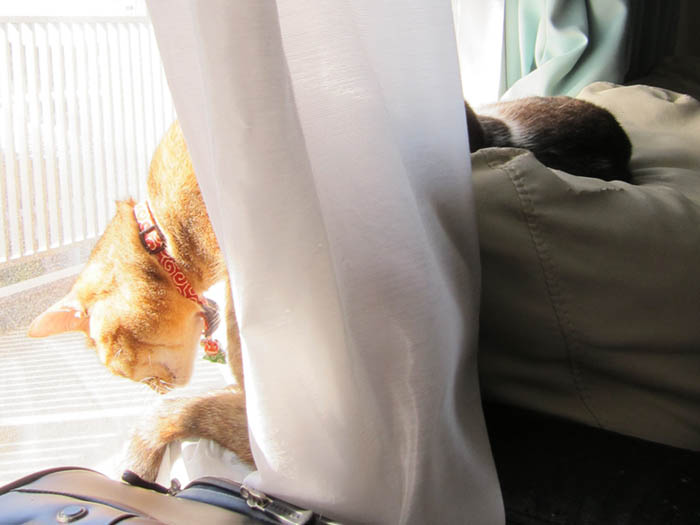 が降った翌日の2匹。色々な暖かい場所にいました。