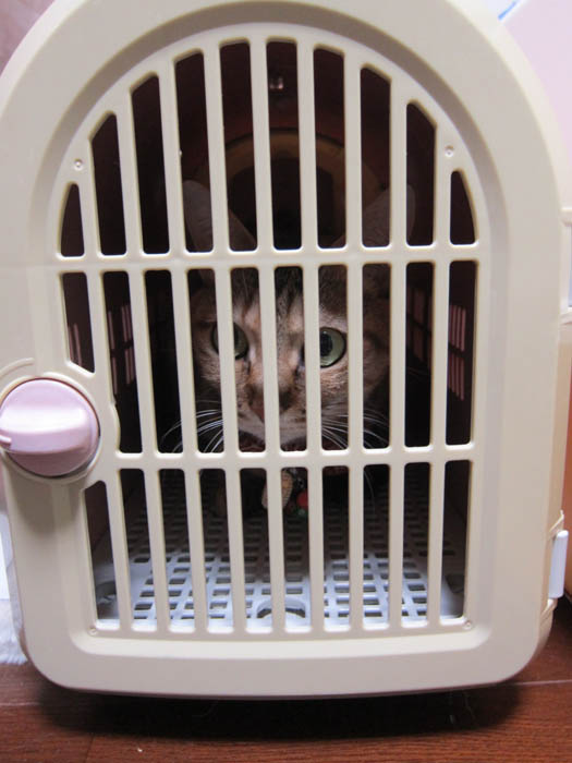 で、その頃のぴっち♀は……キャリー閉じ込めの刑です。